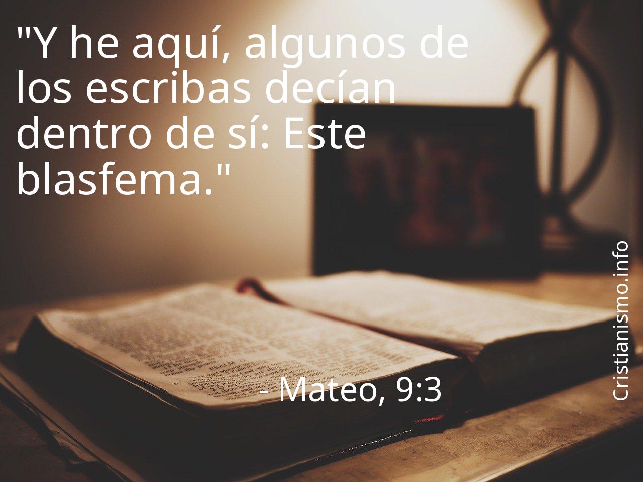 Nos conviene tener siempre presente el versículo Mateo, 9:3 de La Sagrada Biblia a fin de reflexionar en torno a él. ¿Qué quiso manifestarnos Dios con el versículo Mateo, 9:3? ¿Cuáles son las ocasiones de nuestro día a día en que tenemos la oportunidad de hacer valer lo que aprendemos gracias al versículo Mateo, 9:3 de Las Sagradas Escrituras?