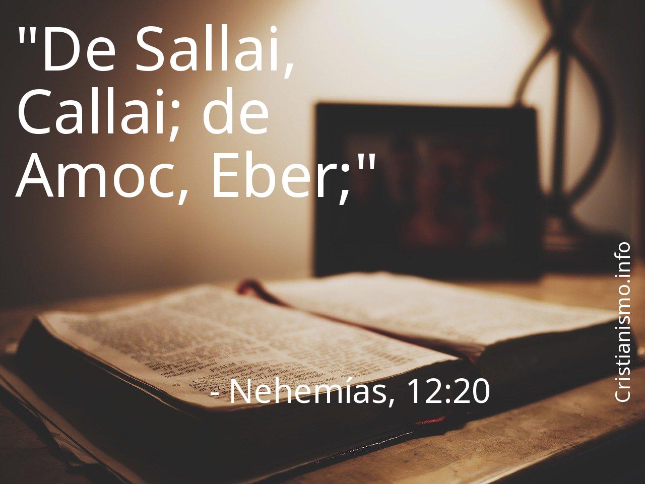 Es conveniente tomar siempre en cuenta el versículo Nehemías, 12:20 de La Sagrada Biblia con el fin de analizarlo y pensar acerca de él.Probablemente sería adecuado preguntarse ¿Qué intentaba decirnos Nuestro Padre que está en los Cielos con el versículo Nehemías, 12:20? ¿En qué momentos de nuestro día a día podemos llevar a la práctica aquello que aprendemos gracias al versículo Nehemías, 12:20 de La Biblia?