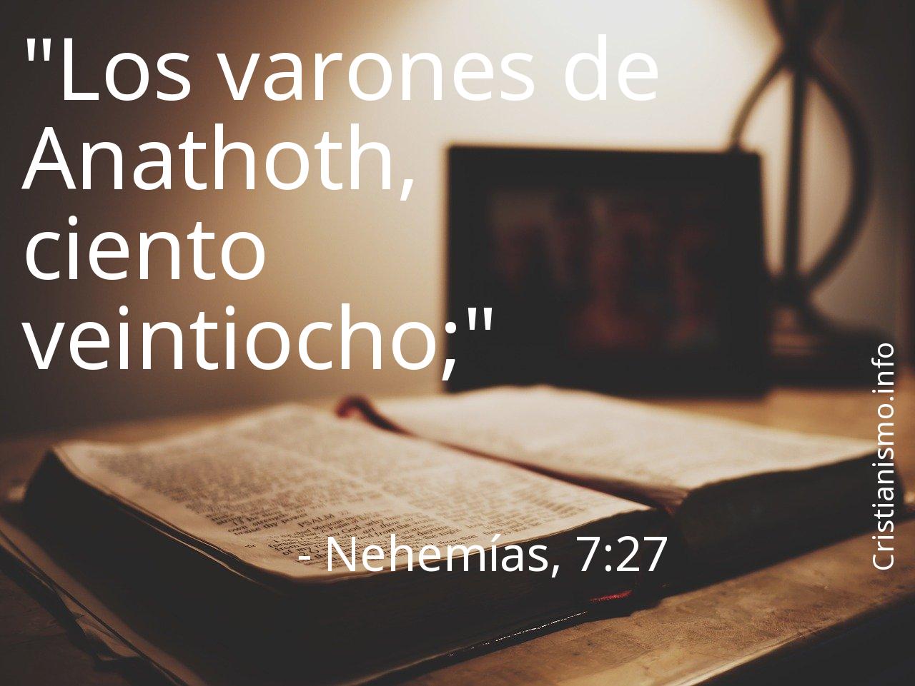 Discurrir y recapacitar en torno a lo que se refiere el versículo Nehemías, 7:27 nos es de gran ayuda a ser más agradables a los ojos de el Creador del Cielo y de la Tierra y a elevar nuestra alma hacia Dios, por eso es conveniente recurrir al versículo Nehemías, 7:27 cuando creamos que precisemos que la palabra de Dios, Nuestro Señor nos indique el camino a seguir para saber cómo proceder o para traer la serenidad a nuestros corazones.