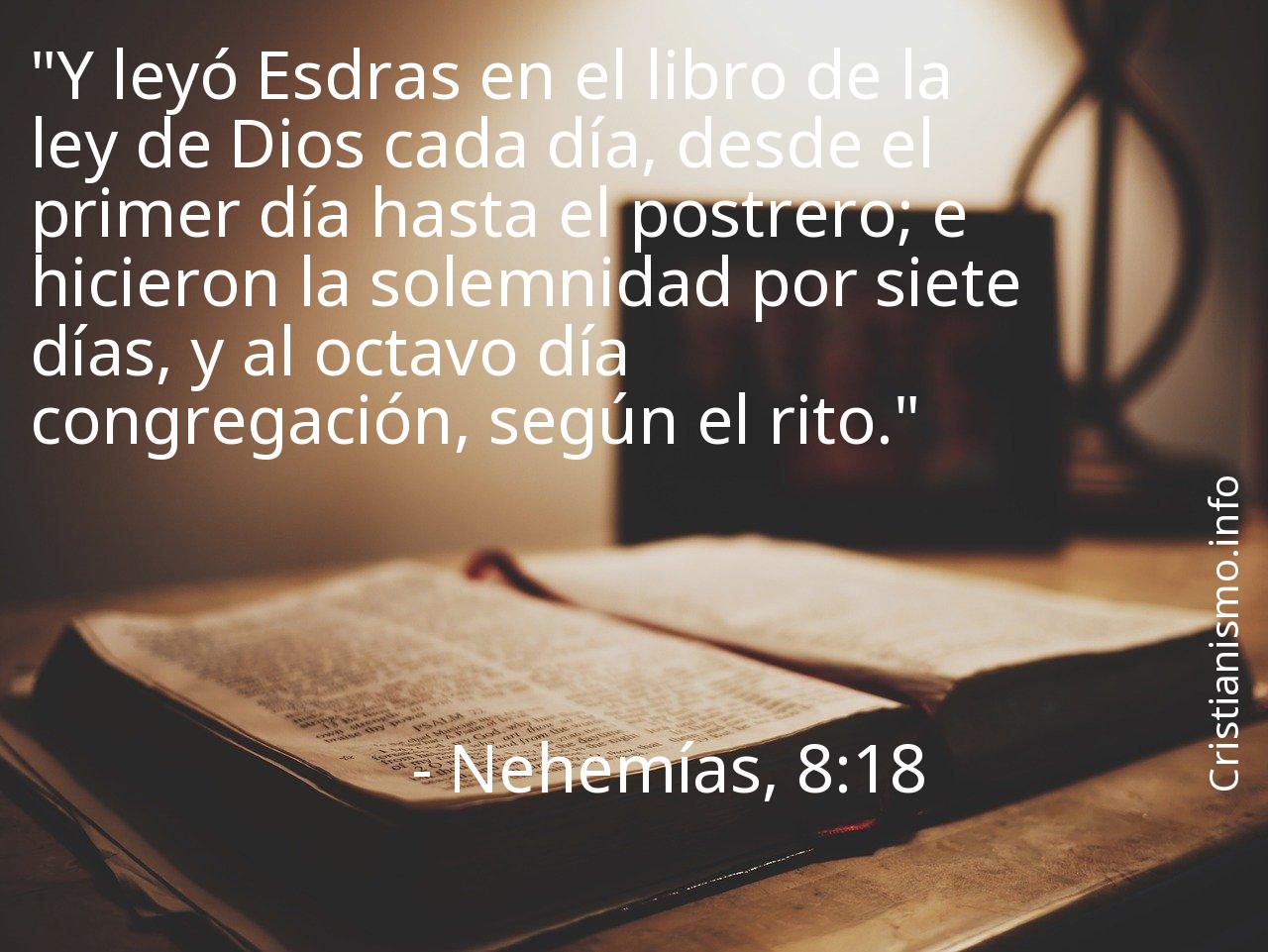 Discurrir y recapacitar en torno a lo que se refiere el versículo Nehemías, 8:18 nos supone una ayuda a ser mejores cristianos y a elevar nuestra alma hacia Dios, por esa cuestión es conveniente acudir al versículo Nehemías, 8:18 en todas aquellas ocasiones en que nos pueda servir de guía para saber qué pasos dar o para traer la tranquilidad a nuestros corazones y almas.