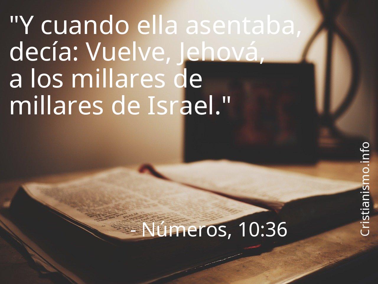 Hay que tener siempre presente el versículo Números, 10:36 de los Textos Sagrados que componen la Biblia de tal forma que podamos analizarlo y pensar sobre él.Quizás sería acertado cuestionarse ¿Qué intentaba manifestarnos Dios, Creador del Cielo y de la Tierra con el versículo Números, 10:36? ¿En qué momentos de nuestra vida diaria tenemos la oportunidad de hacer valer aquello que hemos alcanzado a saber gracias al versículo Números, 10:36 de La Sagrada Biblia?