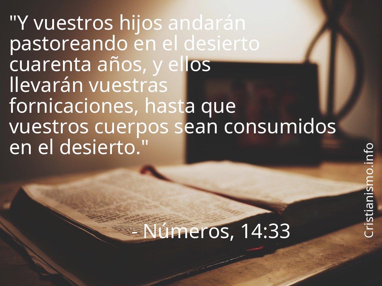 El versiculo Números, 14:33 de La Sagrada Biblia consiste en algo que deberíamos tener continuamente presente a fin de hacer una reflexión sobre él.Tal vez sería adecuado preguntarse ¿Qué trataba de manifestarnos Dios Nuestro Señor con el versículo Números, 14:33? ¿Cuáles serán las coyunturas de nuestra vida cotidiana en que podemos llevar a la práctica lo que aprendemos gracias al versículo Números, 14:33 de la Santa Biblia?