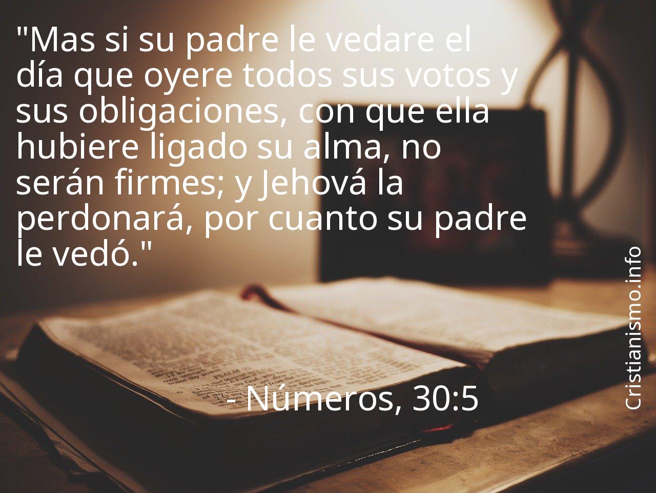El versiculo Números, 30:5 de La Sagrada Biblia consiste en algo que hay que tomar continuamente en cuenta a fin de analizarlo y pensar sobre él.Probablemente sería adecuado preguntarse ¿Qué intentaba decirnos Dios, Creador del Cielo y de la Tierra con el versículo Números, 30:5? ¿En qué ocasiones de nuestra vida diaria podemos recurrir a lo que aprendemos gracias al versículo Números, 30:5 de La Biblia?
