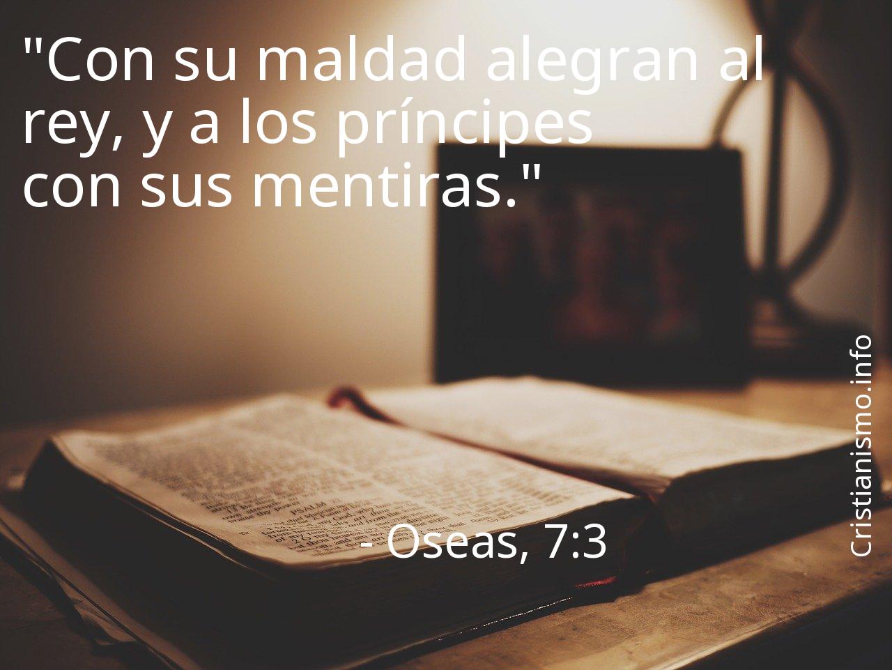 Es muy recomendable tomar continuamente en consideración el versículo Oseas, 7:3 de La Santa Biblia con el propósito de reflexionar acerca de él.Quizás sería bueno preguntarse ¿Qué quiso proponernos Nuestro Padre Todopoderoso con el versículo Oseas, 7:3? ¿Cuáles son las ocasiones de nuestra vida diaria en que podemos llevar a la práctica lo que hemos alcanzado a saber gracias al versículo Oseas, 7:3 de Las Sagradas Escrituras?