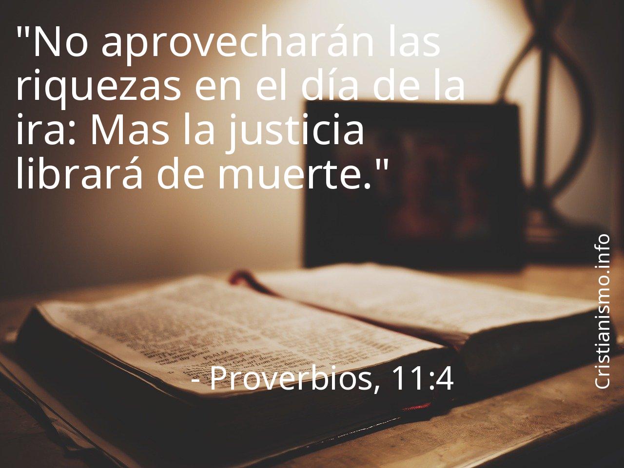 Hay que tener constantemente presente el versículo Proverbios, 11:4 de La Sagrada Biblia con el fin de meditar acerca de él.Tal vez deberíamos preguntarnos ¿Qué pretendía proponernos el Señor con el versículo Proverbios, 11:4? ¿En qué ocasiones de nuestro día a día tenemos la oportunidad de recurrir a aquello que hemos alcanzado a saber gracias al versículo Proverbios, 11:4 de la Santa Biblia?