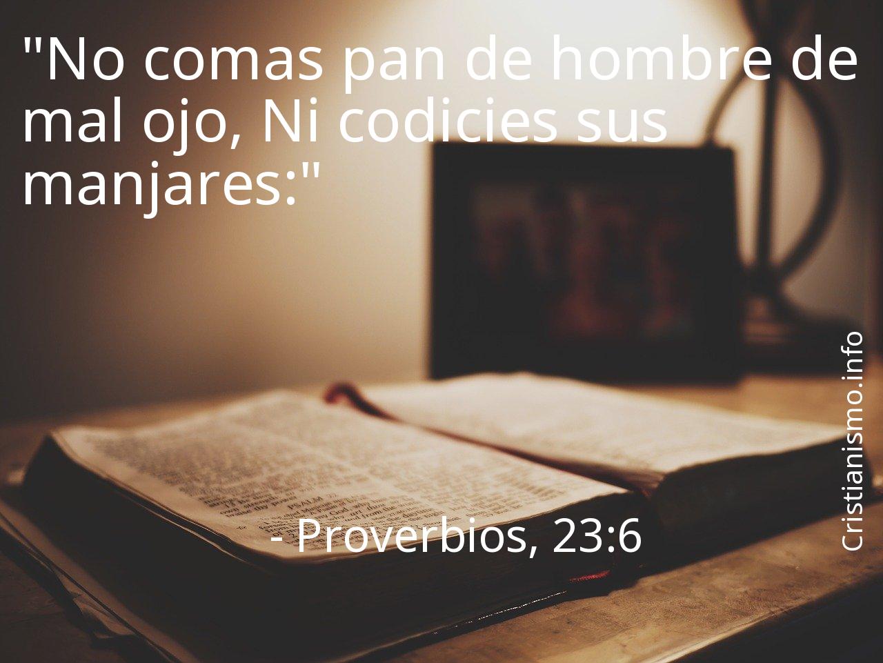 Es aconsejable tomar constantemente en consideración el versículo Proverbios, 23:6 de La Biblia a fin de reflexionar sobre él. ¿Qué intentaba decirnos Nuestro Padre que está en los Cielos con el versículo Proverbios, 23:6? ¿Cuáles serán las coyunturas de nuestra vida cotidiana en que tenemos la oportunidad de hacer valer lo que hemos llegado a saber gracias al versículo Proverbios, 23:6 de Las Sagradas Escrituras?