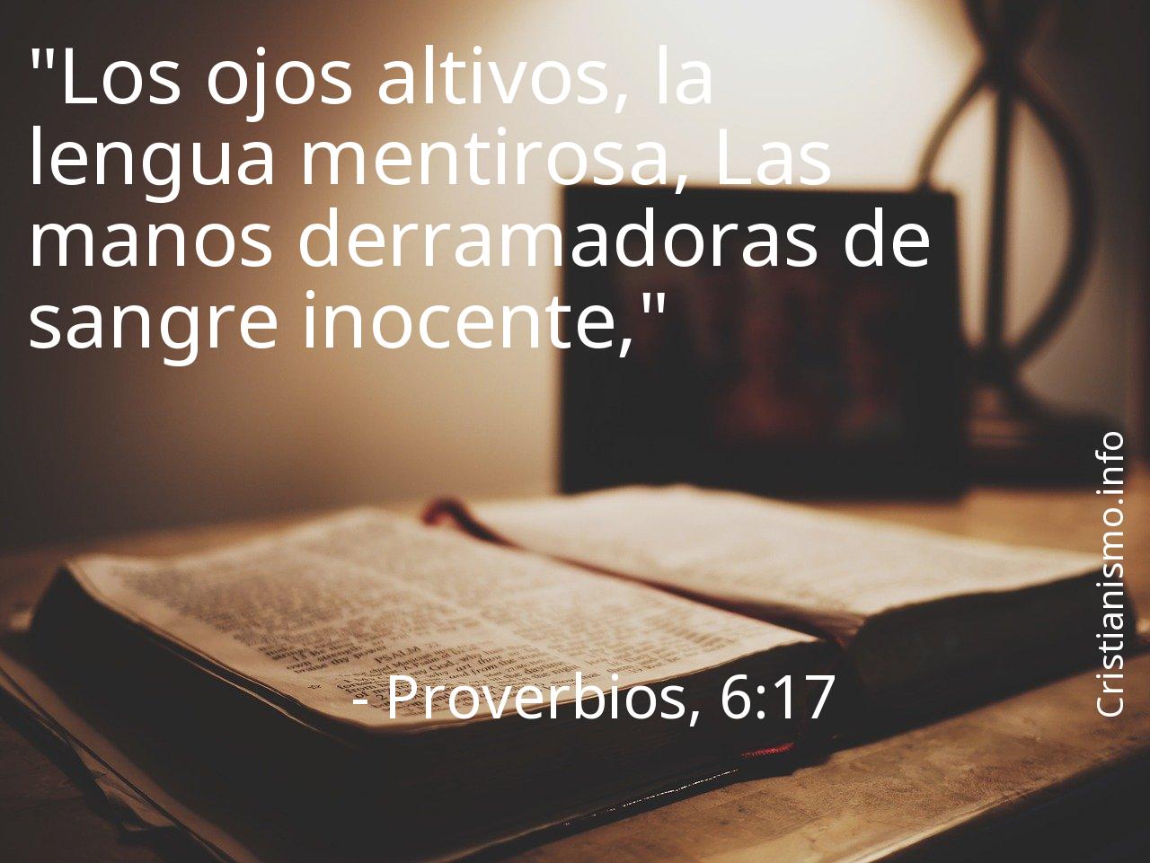 El hecho de reflexionar sobre el versículo Proverbios, 6:17 nos supone una ayuda a ser mejores cristianos y a aproximarnos más a Dios, por esa razón es útil apoyarse en el versículo Proverbios, 6:17 todas y cada una de las veces que pueda servirnos de guía para saber en qué forma acturar o para traer la tranquilidad a nuestras almas.