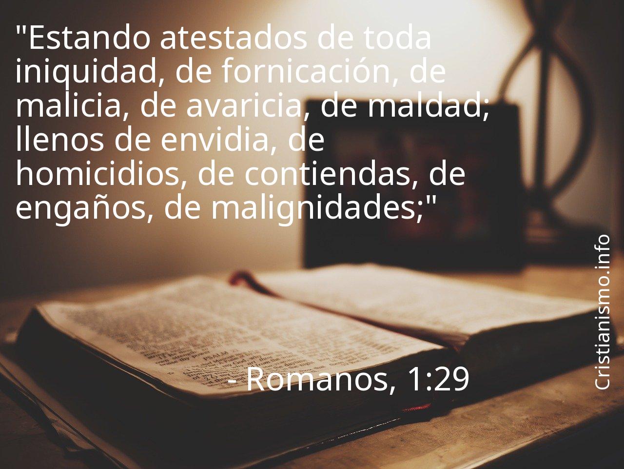 El versiculo Romanos, 1:29 de los Textos Sagrados que componen la Biblia es algo que nos conviene tomar en todo momento en cuenta de manera que podamos analizarlo y pensar sobre él. ¿Qué intentaba decirnos Dios, Creador del Cielo y de la Tierra con el versículo Romanos, 1:29? ¿Cuáles serán las coyunturas de nuestro día a día en que podemos aprovechar lo que hemos aprendido gracias al versículo Romanos, 1:29 de Las Sagradas Escrituras?
