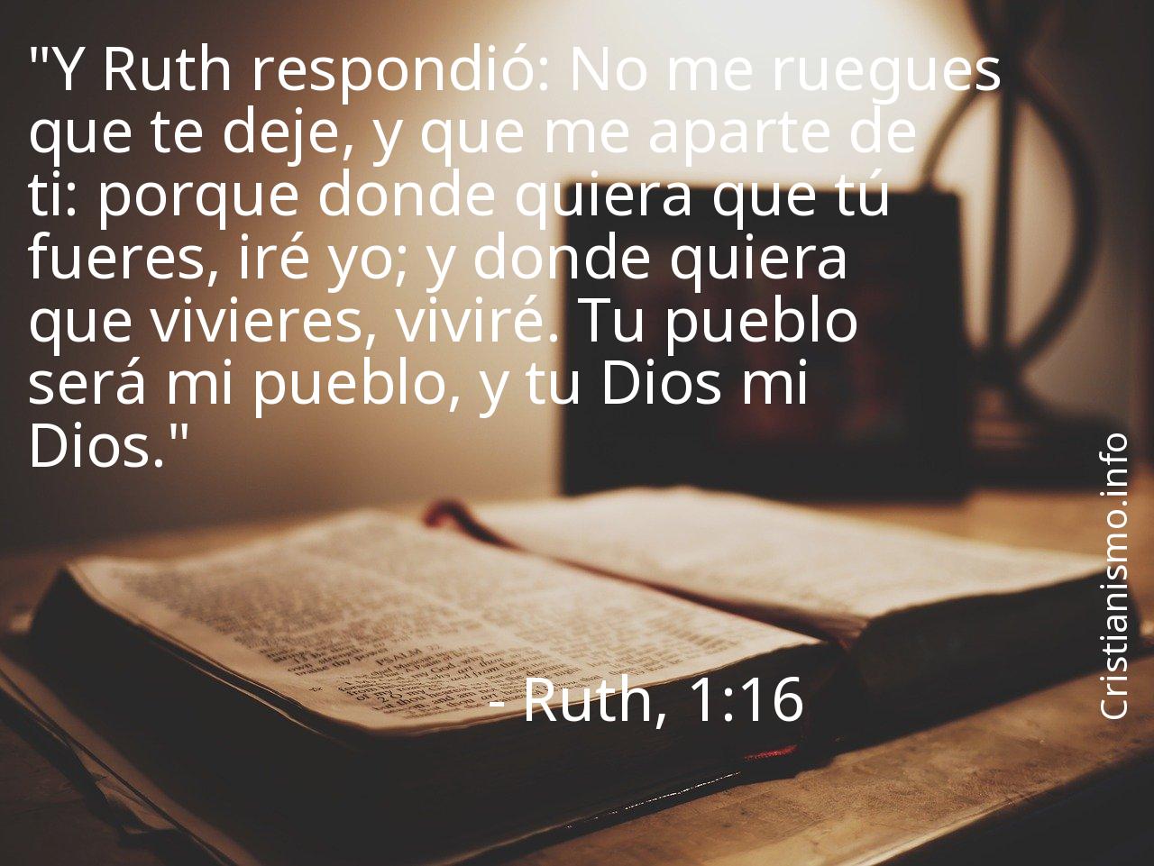 Reflexionar en torno a lo que se refiere el versículo Rut, 1:16 nos supone una ayuda a ser mejores personas y a avanzar en nuestro camino hacia la Gracia de Dios, por esa razón es conveniente apoyarse en el versículo Rut, 1:16 en todas aquellas ocasiones en que necesitemos palabras que nos inspiren y guíen para saber cómo actuar o para traer el sosiego a nuestros corazones y almas.