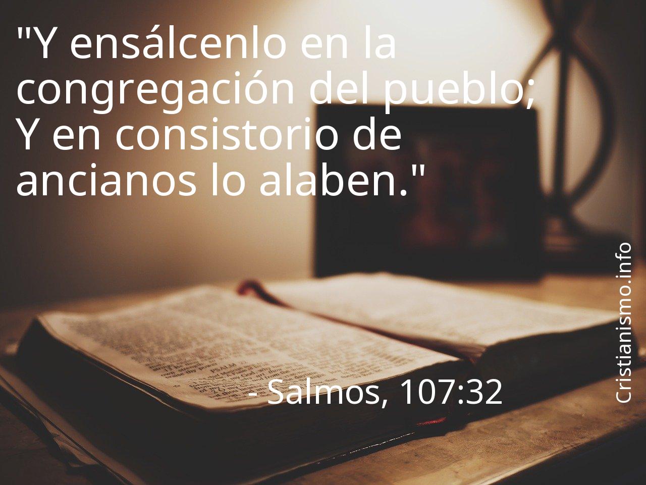 El versiculo Salmos, 107:32 de La Santa Biblia consiste en algo que es conveniente tener siempre presente con el fin de meditar sobre él. ¿Qué trataba de proponernos Dios Padre con el versículo Salmos, 107:32? ¿Cuáles serán las coyunturas de nuestra vida diaria en que tenemos la oportunidad de hacer valer aquello que hemos llegado a saber gracias al versículo Salmos, 107:32 de La Sagrada Biblia?