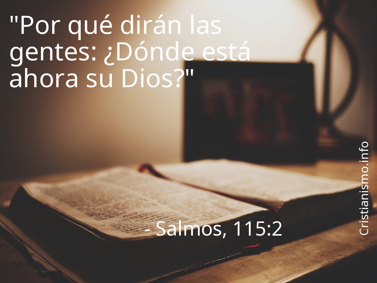 Dedicar tiempo a la meditación acerca de el versículo Salmos, 115:2 nos supone una ayuda a ser más agradables a los ojos de el Creador del Cielo y de la Tierra y a elevar nuestra alma hacia Dios, esa es la cuestión por la cual es aconsejable acudir al versículo Salmos, 115:2 cada vez que precisemos que la palabra de Dios, Nuestro Señor nos indique el camino a seguir de modo que podamos saber cómo proceder o para traer el sosiego a nuestros corazones y almas.