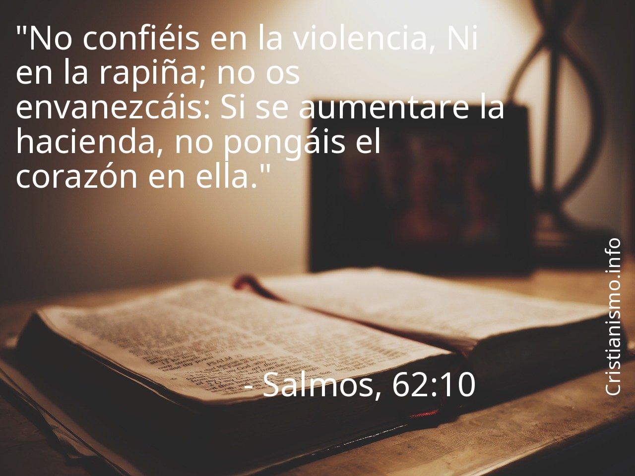 El hecho de reflexionar en torno a lo que se refiere el versículo Salmos, 62:10 nos ayuda a ser capaces de acercarnos más al mensaje de Nuestro Señor y a aproximarnos más a Dios, por ese motivo es oportuno acudir al versículo Salmos, 62:10 todas y cada una de las veces que necesitemos una luz que nos guíe para saber cómo actuar o para traer la serenidad a nuestro espíritu.