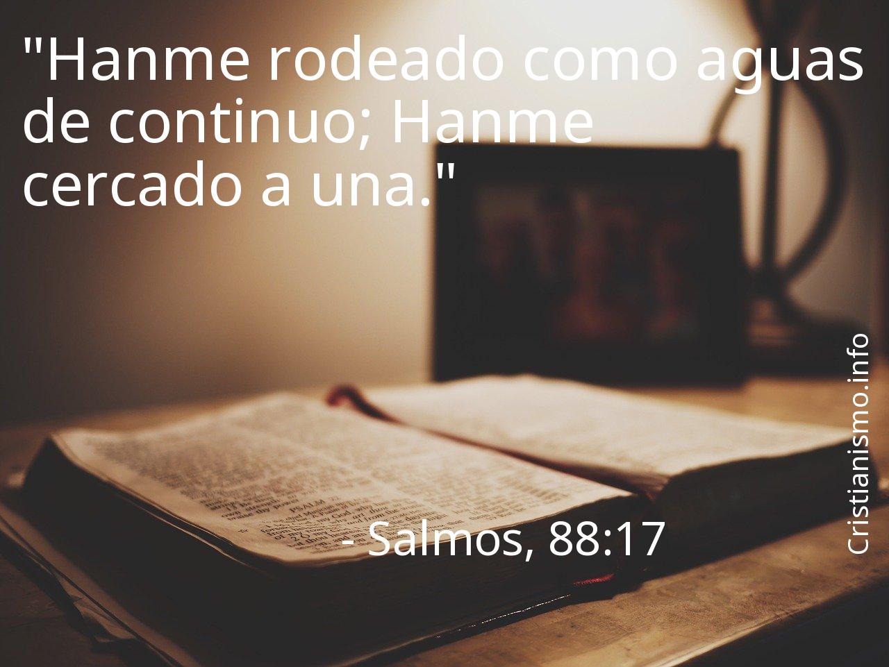 El versiculo Salmos, 88:17 de La Biblia consiste en algo que deberíamos tener continuamente presente a fin de hacer una reflexión acerca de él.Seguramente sería adecuado preguntarse ¿Qué trataba de decirnos Nuestro Padre que está en los Cielos con el versículo Salmos, 88:17? ¿En qué coyunturas de nuestro día a día seremos capaces de hacer valer lo que aprendemos gracias al versículo Salmos, 88:17 de La Sagrada Biblia?