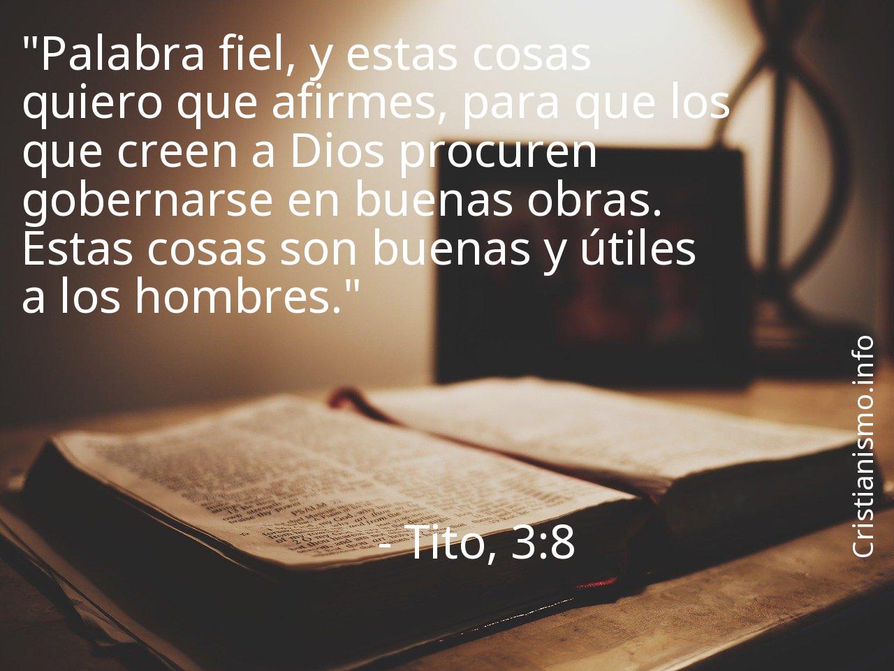 Reflexionar en relación con el versículo Tito, 3:8 es un gran aporte que nos permite a ser mejores cristianos y a acercarnos más a Dios, por eso es bueno acudir al versículo Tito, 3:8 todas y cada una de las veces que necesitemos palabras que nos inspiren y guíen y así saber en qué forma acturar o para traer la paz a nuestros corazones.